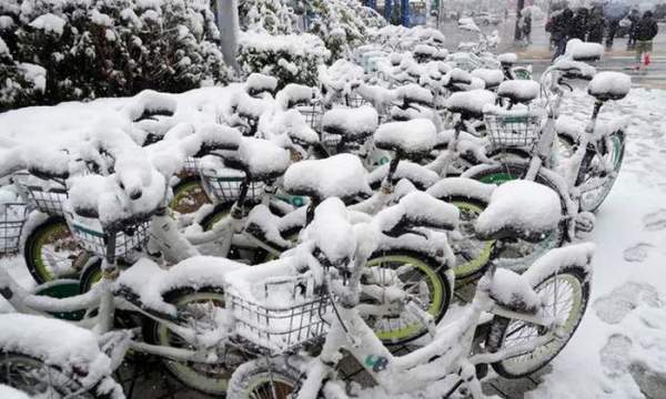 Những chiếc xe đạp phủ đầy tuyết gần ga tàu điện ngầm
