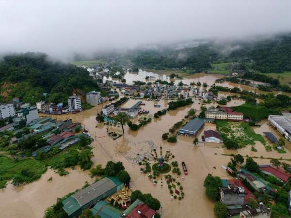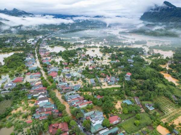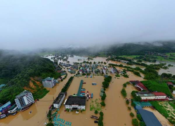 Đường phố ở phường Hà Giang 1 biến thành sông, nhà cửa, hàng quán, trường học chìm trong biển nước.