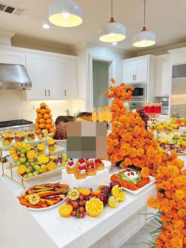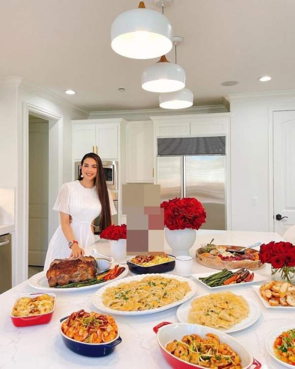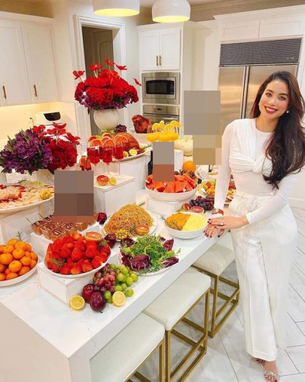 Sang Mỹ định cư từ năm 2018, Hoa hậu Hoàn vũ Việt Nam 2015 thường xuyên mở tiệc thịnh soạn mỗi dịp lễ, cùng ăn uống với gia đình, bạn bè.