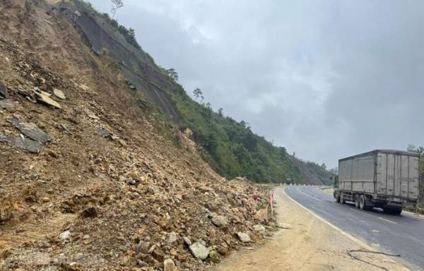 Một số điểm, đất đỏ nhão và bùn từ sườn dốc đã tràn xuống lề đường, gây cản trở giao thông và tiềm ẩn nguy cơ mất an toàn cho phương tiện.