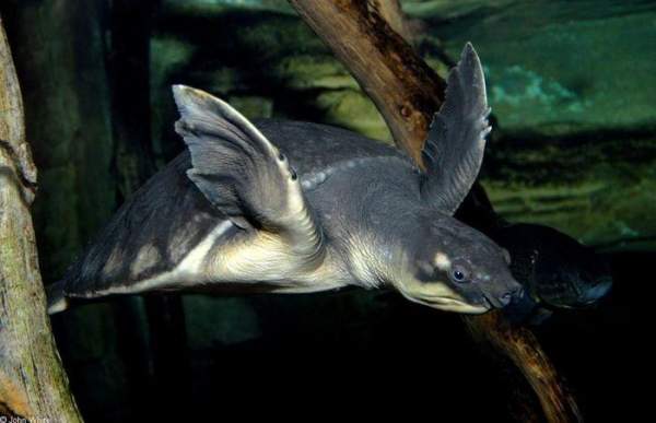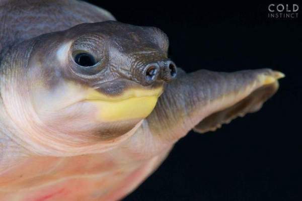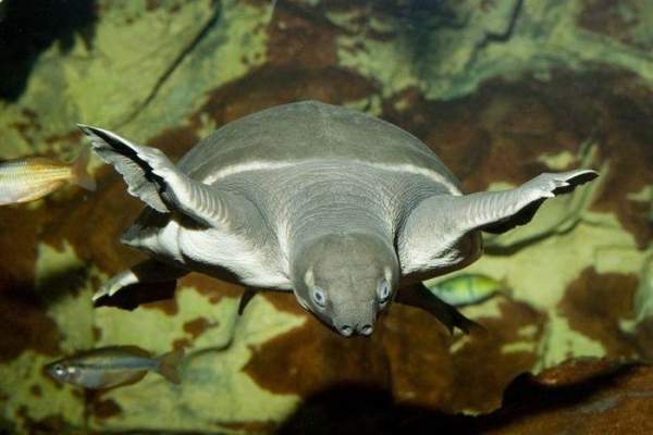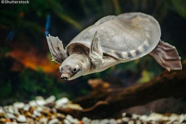 Là loài rùa nước ngọt có hình dáng độc đáo nhất. Rùa sông mũi lợn nổi bật với chiếc mũi mềm giống mũi lợn và hai chi trước dạng mái chèo, trông như sự pha trộn giữa rùa mai mềm và rùa biển. Ảnh: Pinterest.