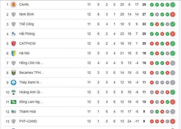 Sau vòng đấu thứ 12, Thép Xanh Nam Định hiện ’chôn chân’ ở vị trí thứ 9 trên bảng xếp hạng với chỉ vẻn vẹn 11 điểm, kém đội đầu bảng Công an Hà Nội FC tới 18 điểm.