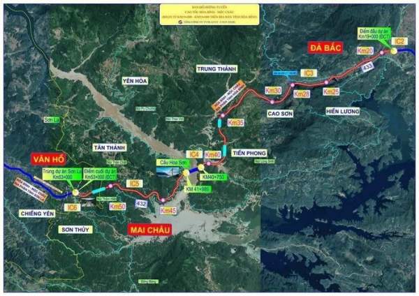 Sơ đồ tuyến cao tốc Hòa Bình - Mộc Châu