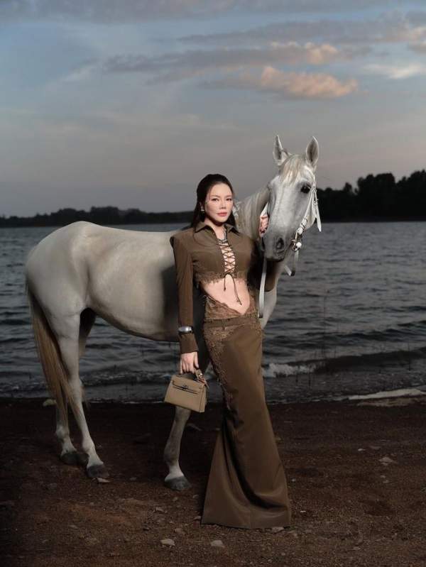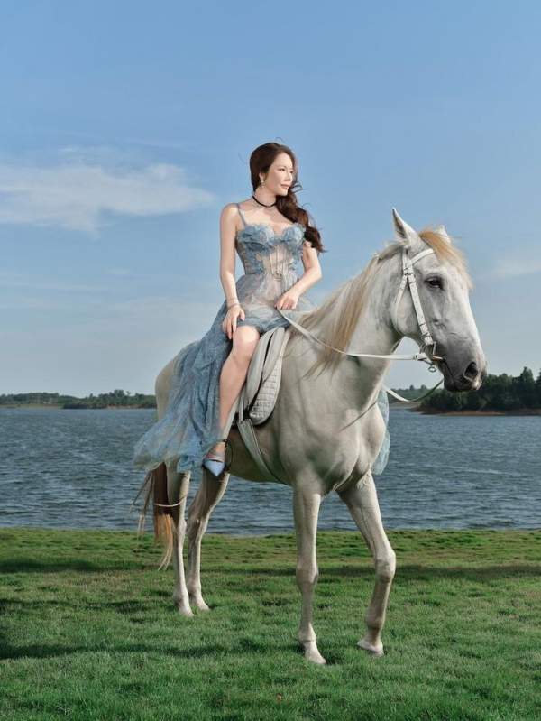 Hình ảnh Lý Nhã Kỳ sánh bước bên ngựa trong khuôn viên resort ven sông gợi liên tưởng đến tinh thần tự do, bền bỉ và mạnh mẽ - những giá trị thường được gắn với con giáp Ngọ. Trong từng khung hình, nữ diễn viên không cần tạo dáng cầu kỳ mà vẫn thể hiện rõ khí chất riêng.