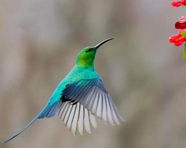 Khả năng bay linh hoạt giữa tán cây rậm rạp. Chim hút mật có thể bay nhanh, đổi hướng đột ngột và lơ lửng trong thời gian ngắn khi hút mật, thích nghi với môi trường rừng rậm và các khu vườn nhiệt đới. Ảnh: Pinterest.
